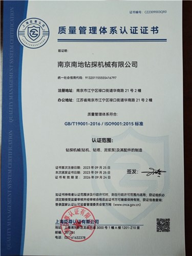 我公司注冊商標“南探牌”,經(jīng)營范圍:鉆探機械(1、鉆機系列:鉆探機、鉆探設(shè)備、探礦設(shè)備、地質(zhì)鉆探設(shè)備、勘探設(shè)備、打井設(shè)備、注漿設(shè)備、堵漏設(shè)備,自行走履帶鉆探設(shè)備各類鉆機,背包鉆機、輕便鉆機、小型鉆機、中型鉆機、大型鉆機、地質(zhì)鉆機、勘探鉆機、巖心鉆機、巖芯鉆機、工勘鉆機、工程勘察鉆機、探礦鉆機、超前地質(zhì)鉆機、取芯鉆機、取樣鉆機、水井鉆機、打井鉆機、地熱鉆機、灌漿鉆機、引孔鉆機、淺孔鉆機、中深孔鉆機、深孔鉆機、水平鉆機、隧道鉆機、礦山坑道鉆機、錨固鉆機、潛孔鉆機、全液壓鉆機、履帶鉆機、多功能鉆機、拖掛鉆機、輪式鉆機、兩輪拖掛鉆機、四輪拖掛鉆機、履帶式地質(zhì)鉆機,2、配套鉆機底座及鉆塔:兩輪、四輪拖掛底座及三角架鉆塔、四角架鉆塔、全液壓鉆塔,自行走履帶底盤及鉆塔,井字型鉆塔,A型鉆塔;3、泥漿泵、注漿泵、灌漿泵系列:泥漿泵、注漿泵、注漿機、灌漿泵、灌漿機、水泥砂漿泵等注漿設(shè)備、灌漿設(shè)備及配套灌漿攪拌機、泥漿攪拌機等和配套);齊全的鉆探工具系列(鉆桿、接頭、巖心管、套管、合金鉆頭、金剛石鉆頭、復(fù)合片鉆頭、水龍頭、鉆探提引器具、輕便觸探錘、動力觸探錘、硬土取土器、軟土取土器、麻花鉆螺旋鉆提土鉆、繩索取芯鉆具、雙管鉆具等);靜力觸探機、靜力觸探儀系列(3T手搖靜力觸探、5T-8T-10T-15T-20T-25T液壓靜力觸探機靜探儀、分體式、四輪拖掛、履帶靜探車、履帶式靜力觸探車、履帶靜力觸探機、履帶靜力觸探儀);錨固機具系列(錨桿提土鉆、地質(zhì)鉆桿、潛孔鉆頭);注漿機、灌漿機、水利機械及設(shè)備(水利大壩灌漿注漿鉆孔機、灌漿注漿泵、注漿管、注漿頭、封孔器塞、注漿塞)及通用機械設(shè)備、鉆機配件、泥漿泵配件的設(shè)計、制造、銷售、修理和服務(wù)。
