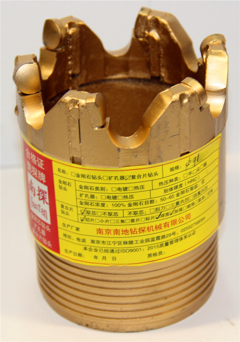 巖心管(單管)取芯復(fù)合片鉆頭按照復(fù)合片的種類又可以分:普通型復(fù)合片鉆頭、加強(qiáng)型復(fù)合片鉆頭、球面復(fù)合片鉆頭、超強(qiáng)型復(fù)合片鉆頭、盔齒型復(fù)合片鉆頭、切片復(fù)合片鉆頭、小牙復(fù)合片鉆頭、小牙螺紋復(fù)合片鉆頭、菠蘿復(fù)合片鉆頭、外肋骨復(fù)合片鉆頭、無(wú)內(nèi)徑跟管復(fù)合片鉆頭等許多種,以便于滿足不同地層、砂礫石、巖石的取芯需求。該種鉆頭穩(wěn)定性好,具有使用壽命長(zhǎng)、鉆進(jìn)效率高、低壓中速鉆進(jìn)、保徑效果好、使用范圍廣和具有優(yōu)越的性價(jià)比等特點(diǎn),可廣泛應(yīng)用于地質(zhì)勘探、煤田開(kāi)采、水利水電施工(水井開(kāi)發(fā))、地?zé)峥住⒐?、鐵路、建筑施工建設(shè)的巖石鉆進(jìn)及巖石抽心取樣驗(yàn)樁。