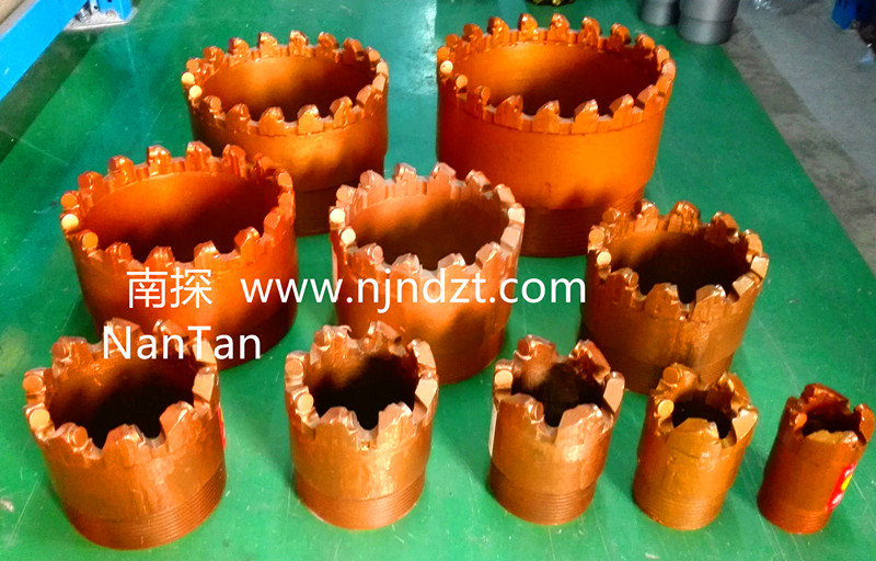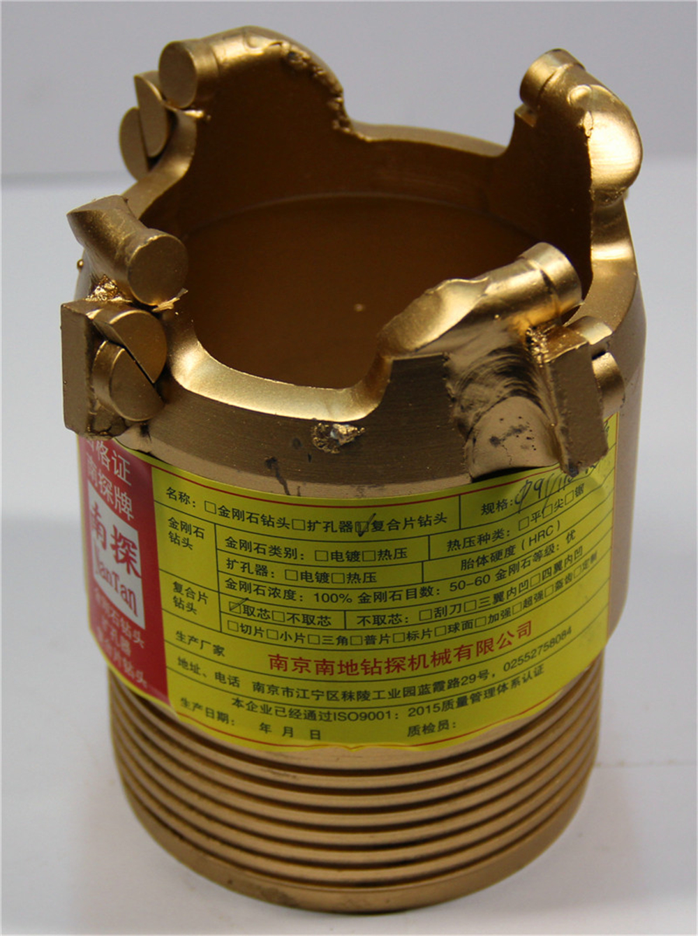 金剛石復(fù)合片取心鉆頭又有普通鉆頭(巖心管)和繩索鉆頭(配套繩索取芯鉆桿)。