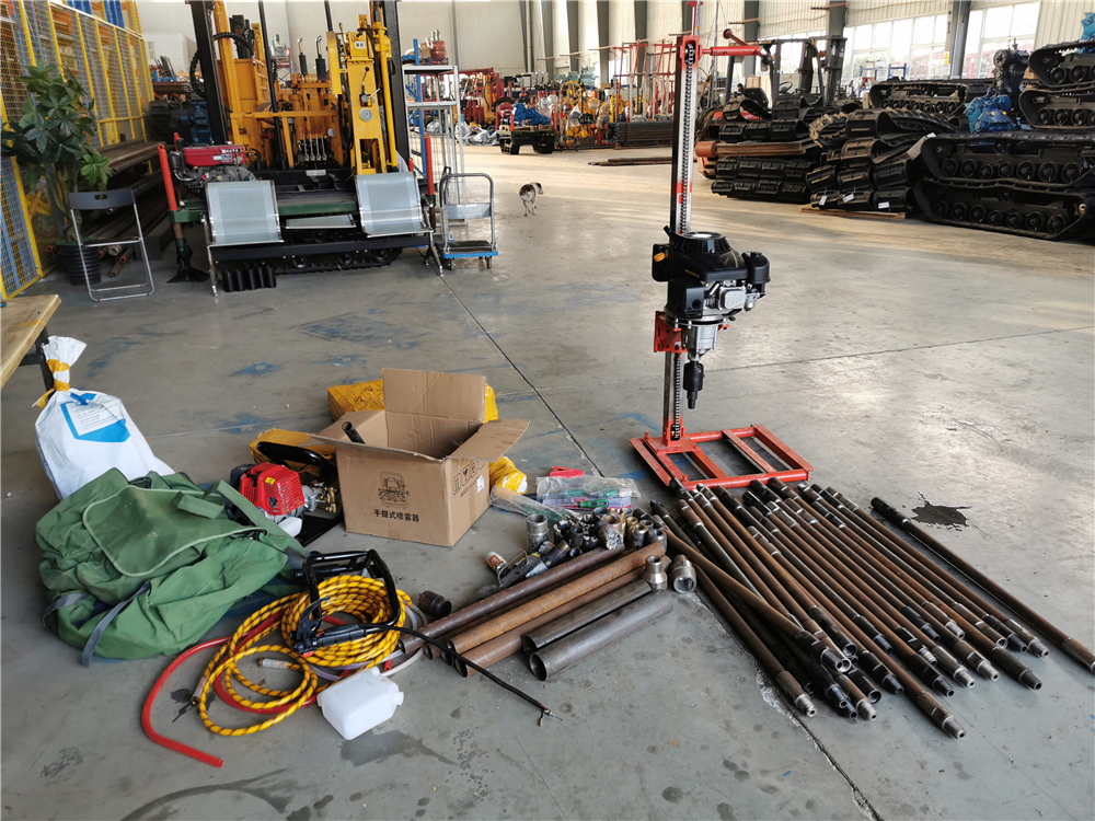 1、取樣鉆機(jī):含汽油發(fā)動(dòng)機(jī)、鉆進(jìn)裝置,鏈條塔式支架。