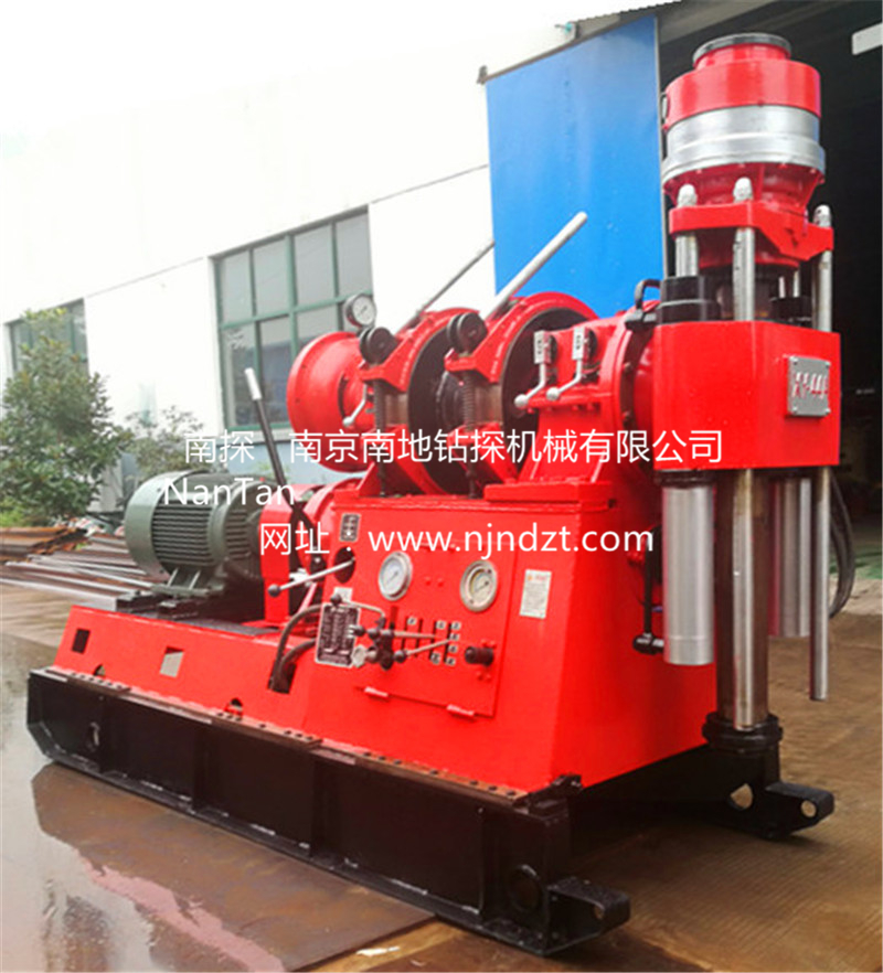 特點(diǎn):具有較多的轉(zhuǎn)速級數(shù)(8級)和合理的轉(zhuǎn)速范圍,低速扭矩大(最大達(dá)3200牛頓·米),既適合以合金、金剛石巖心鉆進(jìn),也可用于工程地質(zhì)勘察,水文水井鉆進(jìn)和基礎(chǔ)樁工程施工。立軸通孔直徑大(直徑93毫米),雙軸缸液壓給進(jìn),行程較長(可達(dá)600毫米),工藝適應(yīng)性強(qiáng),特別適合大直徑鉆桿繩索取心(上部取心)鉆進(jìn),有利于提高鉆進(jìn)效率和減少孔內(nèi)事故。重量輕,可拆性好,鉆機(jī)凈重2300千克,主機(jī)可分解為10個部件(最大可拆部件重量300千克),搬遷方便,宜于山區(qū)工作。 液壓卡盤采用雙向供油并裝有液壓鎖,卡盤夾持力大,夾持穩(wěn)定。 配有水剎車,深孔鉆進(jìn),下鉆平穩(wěn)安全。采用單聯(lián)齒輪油泵供油,安裝簡單,方便使用,功率消耗少,液壓系統(tǒng)油溫低,工作穩(wěn)定。系統(tǒng)中裝有手搖油泵,當(dāng)動力機(jī)不能工作時仍可用手搖油泵起出孔內(nèi)鉆具。 鉆機(jī)結(jié)構(gòu)緊湊,布局合理,所有部件表露在外,不相互重迭,便于維護(hù)、保養(yǎng)和修理。重心低,移車距離長(可達(dá)460毫米),固定牢靠,高速鉆進(jìn)穩(wěn)定性好。 配有防震儀表,儀表壽命長,利于掌握孔內(nèi)情況。操縱手把較少,操縱靈活可靠。通用化程度高,該機(jī)與XY-4型鉆機(jī)通用件達(dá)60%,與XY-42型鉆機(jī)通用件達(dá)75%。